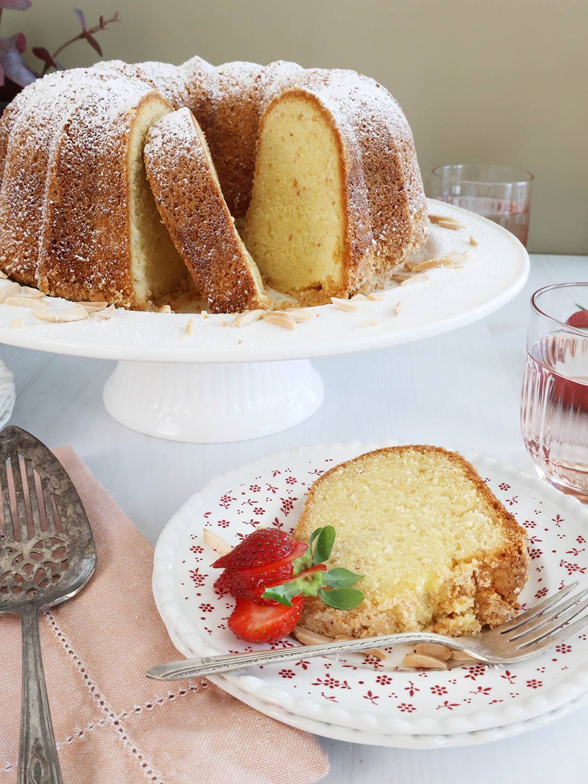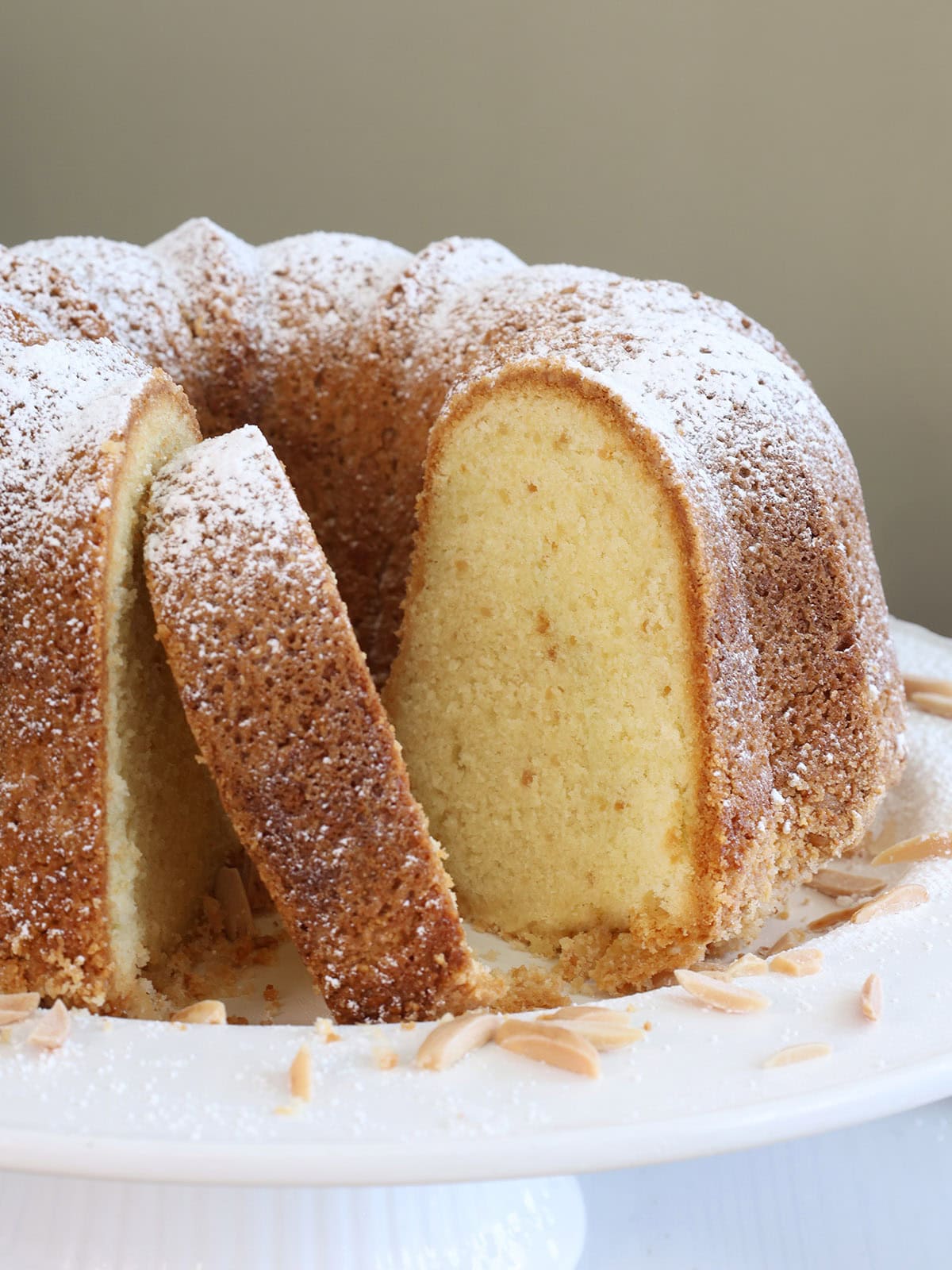 I'd like to introduce you to the best Almond Pound Cake! This tender cake was tested and retested, making it extra special. Plus, you can make it in a Bundt pan, decorative tube pan, and even loaf pans.