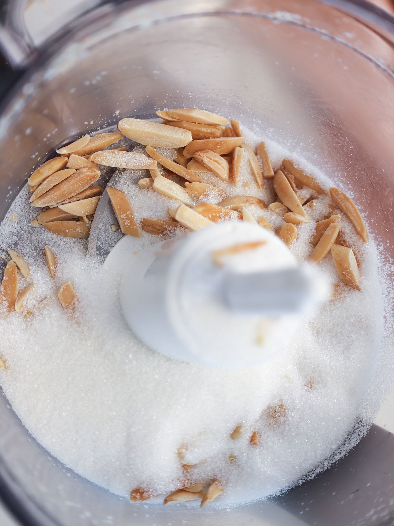- Step 4: Combine the remaining ⅓ cup toasted almonds and ⅓ cup sugar in the food processor.