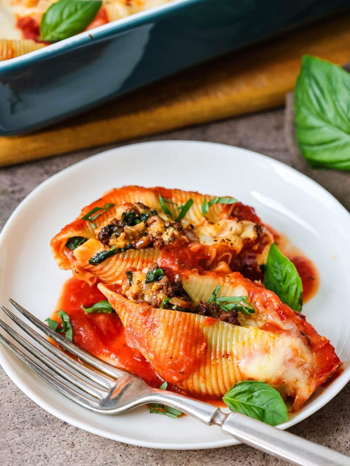 - Let the shells rest for 5 minutes before serving. Serve with fresh basil on top if desired.
