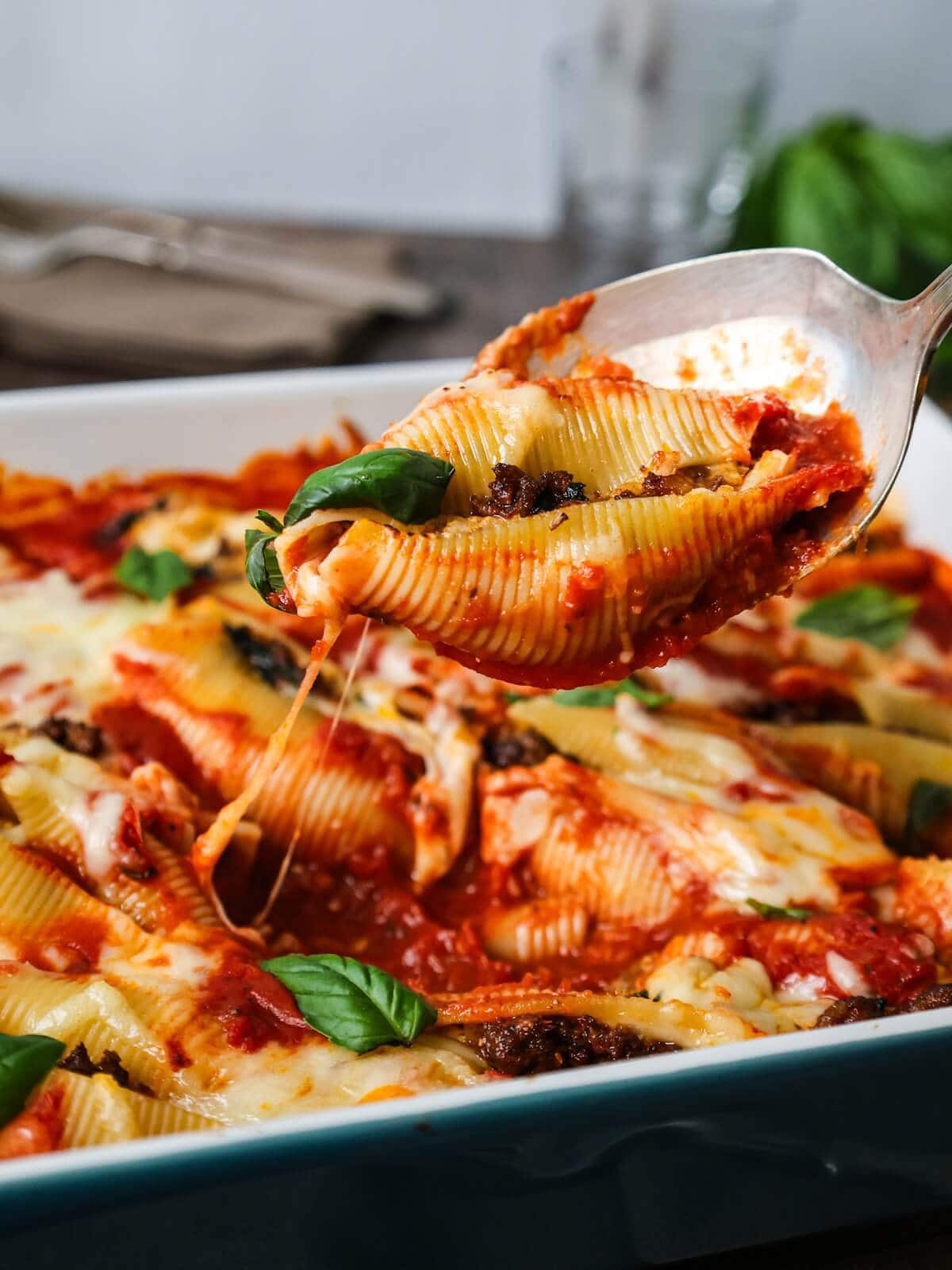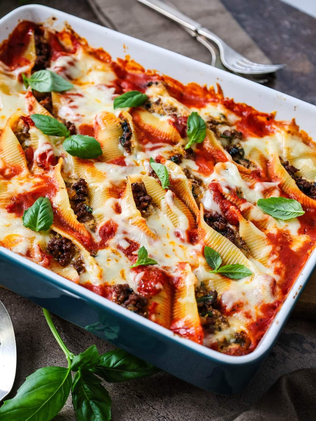 Hint: For serving, let the shells rest for 5 minutes for the cheese to set. They're delicious served with fresh basil on top!