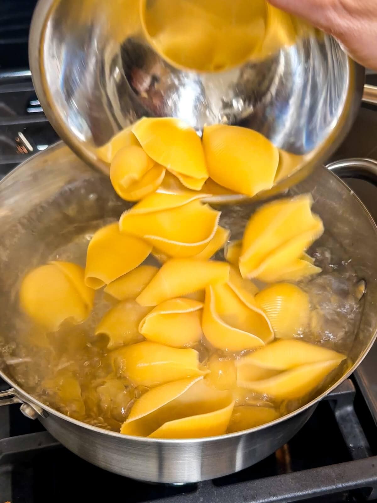 Don't overcook the shells: Since the shells will continue cooking in the oven, you only want to boil them until just al dente (that means "to the tooth") and just barely cooked through. They should still have some bite and texture. Overcooked noodles will release excess water during the baking process and could make your shells watery.