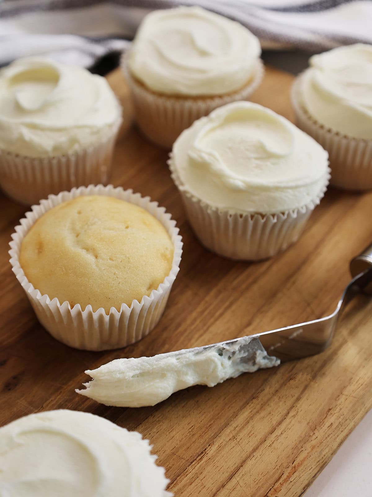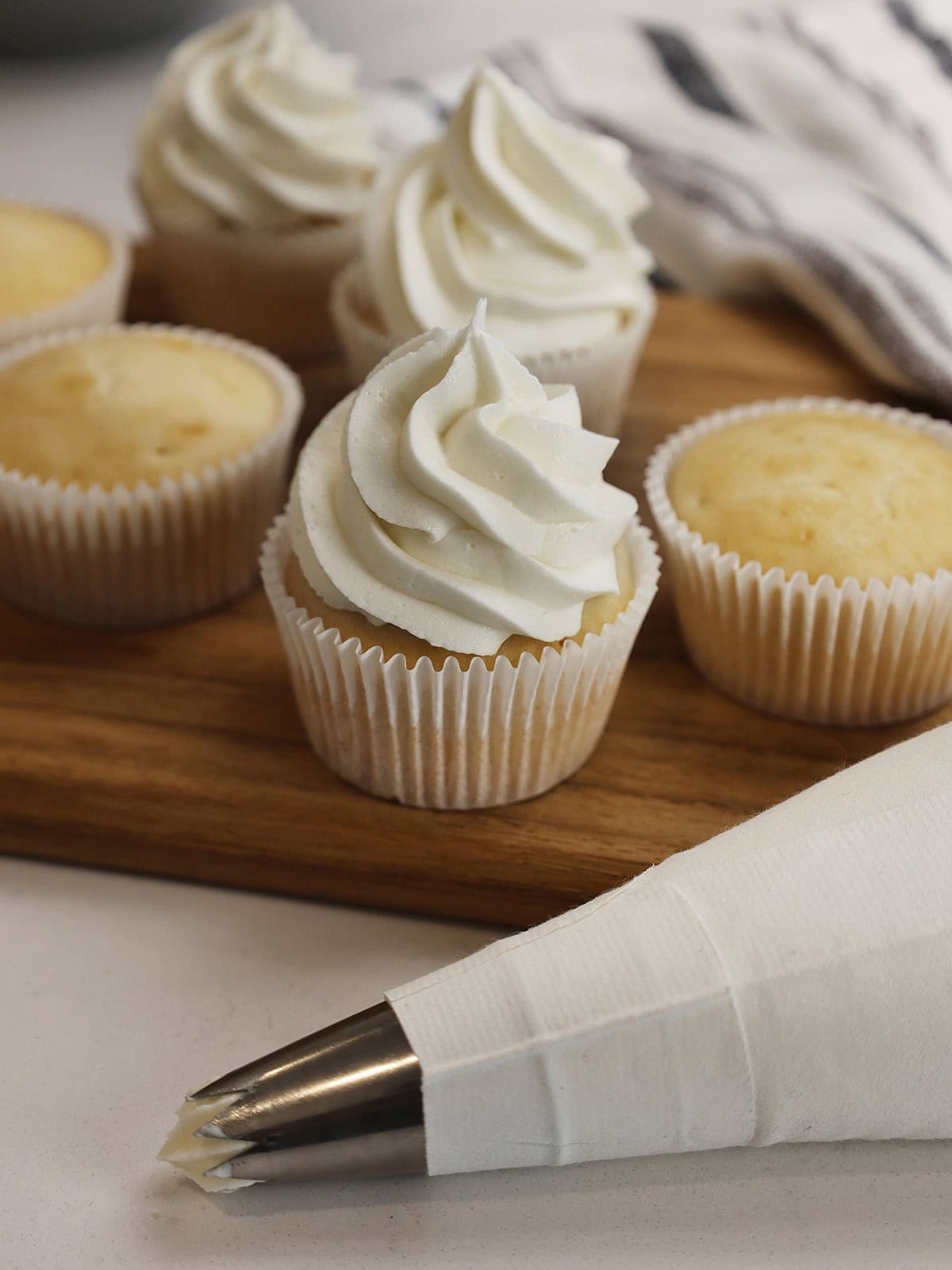 - 24 lightly frosted cupcakes or cookies, or 12 to 15 generously frosted cupcakes with bakery-style swirls on top.