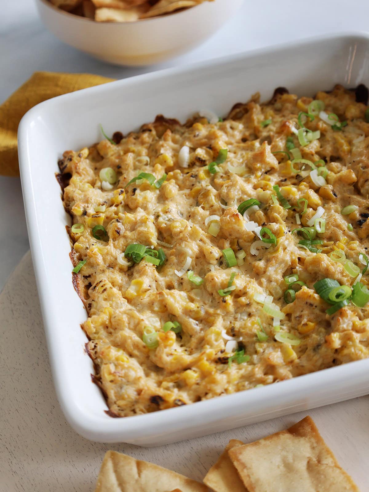 - Grilled corn: If you plan to add fresh grilled corn to the dip, summer is the best time to find it. You can also use fire-roasted corn from the freezer section (Trader Joe's carries some!). Or, you can broil/sauté regular frozen or canned corn to give it smokey flavor. See corn charring tips below.